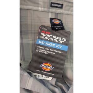 New Mens DICKIES Short Sleeve Flex Woven Relaxed Fit Gray Plaid Shirt 3XL