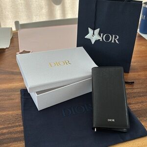 Brand new never used, original condition. Comes with navy Dior wallet cloth pouch, Dior box and wrapping paper and Dior bag with silver star ornament.