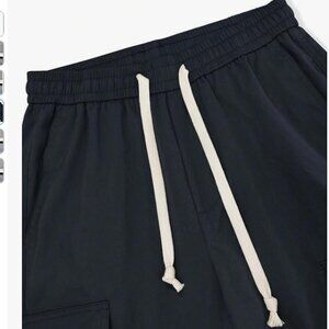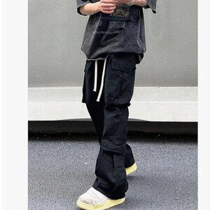 New Men's Drawstring Waist Straight Leg Solid Cargo Pants with Pocket Streetwear