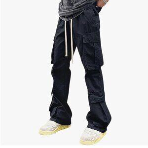 Design: The men's trendy cargo pants features drawstring front, elastic high waist, straight leg, solid, flap pockets