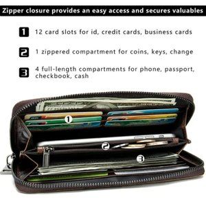 Men's RFID Vintage Look Genuine Leather Long Bifold Wallet Checkbook Wallets