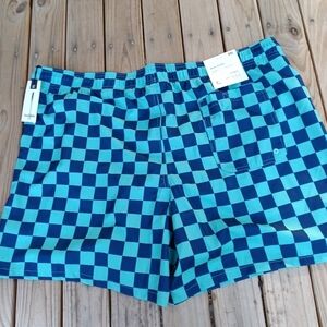 Brand new men's Goodfellow & Co navy blue & teal checkered print lined swim trunks