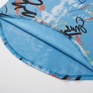 Introducing the new men's graffiti artwork shirt available in multiple sizes. It's made from a blend of 95% cotton and 5% spandex for comfort and moderate elasticity. You can find detailed size information in the provided picture. The T-shirt showcases the latest fashion with its comfortable fabric and digital printing process. Designed with contours and side seams, this stylish T-shirt includes classic features like double-needle sleeves and a high-low hem for lasting quality.