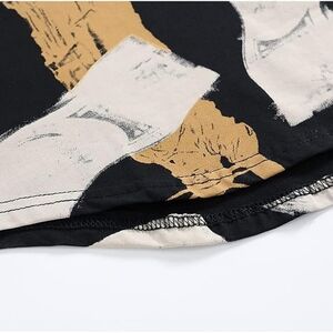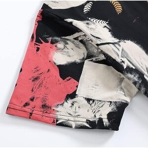 Introducing the new men's graffiti artwork shirt available in multiple sizes. It's made from a blend of 95% cotton and 5% spandex for comfort and moderate elasticity. You can find detailed size information in the provided picture. The T-shirt showcases the latest fashion with its comfortable fabric and digital printing process. Designed with contours and side seams, this stylish T-shirt includes classic features like double-needle sleeves and a high-low hem for lasting quality.