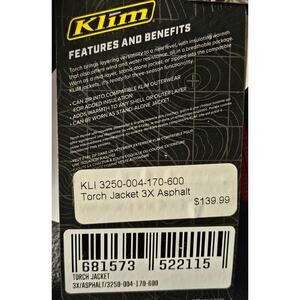 New Men's Klim Gray Torch Fleece Jacket, 3x