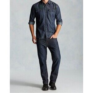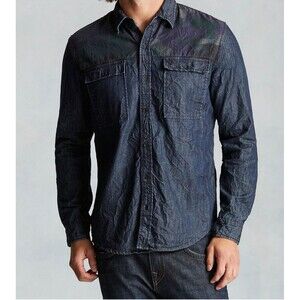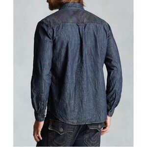 New Mens NWT True Religion Jeans Designer Denim Camo Shirt Button Down L Blue