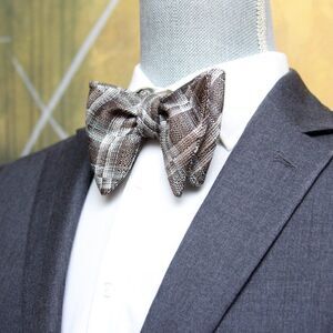 New Men's Self-tied Bow Tie 100%Silk Big Butterfly Grey Plaid S650