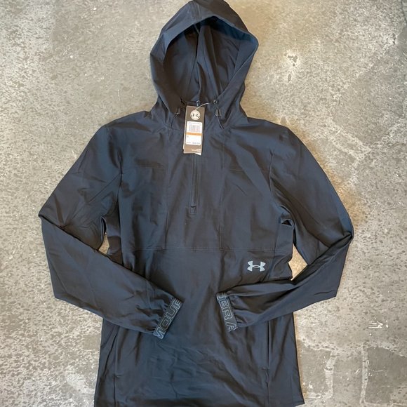 New Men's Small Under Armour Vanish Hybrid Quarter Zip Fitted Hoodie Black
