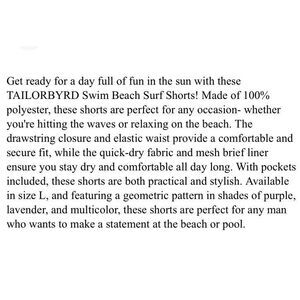 These TAILORBYRD Swim Beach Surf Shorts are perfect for any water activity. Designed with a mesh lining and a stretch waist, they provide comfort and support while you surf or swim. Available in a vibrant multicolor, these shorts are perfect for men who want to look stylish and feel comfortable at the same time. They are made from high-quality materials, ensuring they will last for many water adventures to come. These swim shorts are great for any man who loves to be active in the water and wants to make a fashion statement.