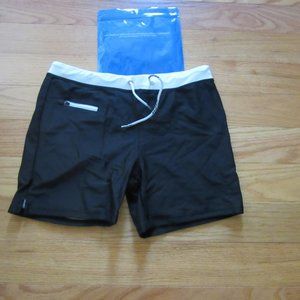 New, Men's Taddlee Black w White Boxer Style Swim Shorts in Size Medium