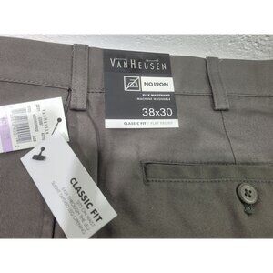 New Mens Van Heusen No Iron Cotton Pants Flex Waistband Flat Front Brown 38x30