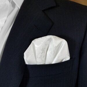New - Men's White Silky Floral Satin Pre-Folded Pocket Square Insert