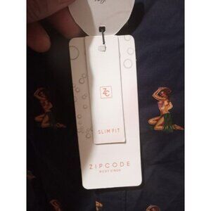 New Men's Zip Code Ricky Singh Short Sleeve Blue Button Up Shirt Small S All Over Print