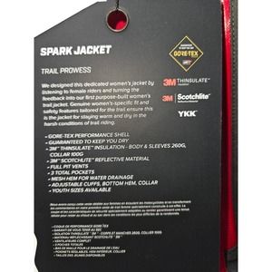 New Men's or Ladies Klim Red and Gray spark jacket, size large, Gore Tex performance Shell, guaranteed the keep you dry, 3M Thinsulate insulation, 3M scotch lite reflective material, full pit vents, 3 total pockets, mesh hem for water drainage, adjustable cuffs, bottom hem and collar. Discounted overestuck item.