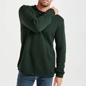 Crafted with 100% merino wool- Versatile, medium-weight sweater -Rolled crew neck, hem, and cuffs