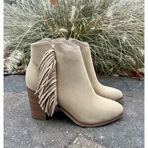 Step out in style with these adorable Mia beige fringe booties! These light-colored tan fringed boots are the perfect addition to your boho-chic wardrobe. Brand new in box, ready for you to enjoy!