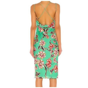 New Michael Costello Revolve Bentley Dress Slip Green Tropical Floral XS Criss Cross NWT