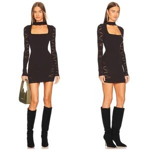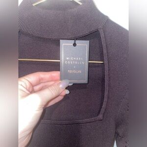 New! Michael Costello x REVOLVE Brylie Mock Neck Mini Dress Chocolate Brown 🤎NWT