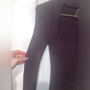 This gorgeous dark chocolate brown knit dress by Michael Costello is a show stopper! It’s so fun, yet flattering you’ll love it! It features eyelet detail throughout some of the knit. It is marked a size XXS but it can also fit a XS, comfortably due to the stretch in the material!