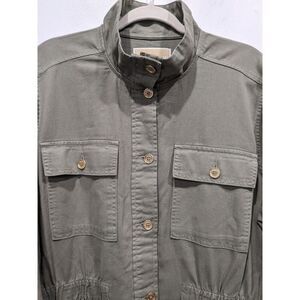 NWT Michael Kors Army Green Denim Gold Button Front Longline Military Jacket, Size 2X