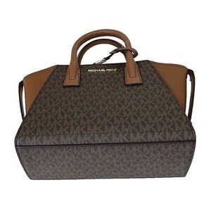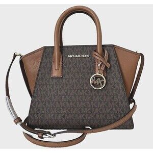 New Michael Kors Avril Small Top Zip Satchel Signature Brown
