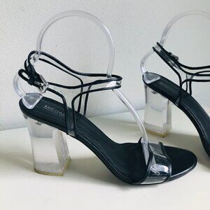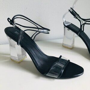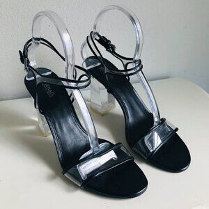 New Michael Kors Black Tori Sandal Lucite Heel Size 9.5 EU 39.5