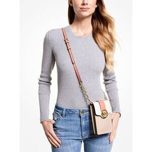 New Michael Kors Carmen Small Faux Leather Phone Crossbody Powder Blush Multi