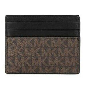 New Michael Kors Cooper Tall Card Case Brown / Lemon