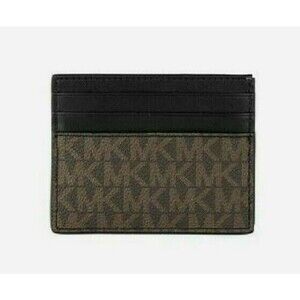 New Michael Kors Cooper Tall card case PVC with Leather Brown / Lemon multi