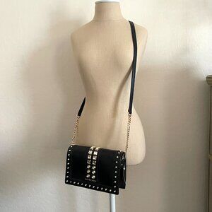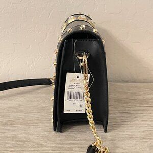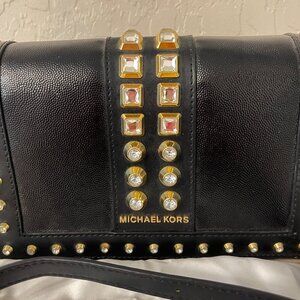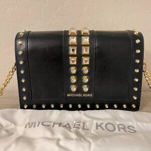 New Michael Kors Crossbody Bag Black Gold Rhinestone Crystal Studs Chain Flap MK