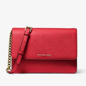 New Michael Kors Daniela Large Saffiano Leather Crossbody Bag Crimson