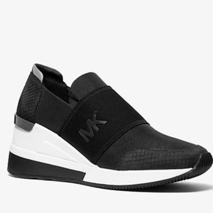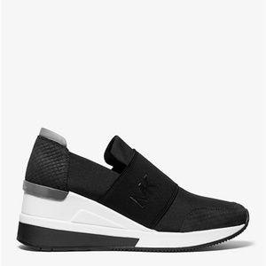 New Michael Kors Felix Canvas and Snake-Embossed Nubuck Trainer