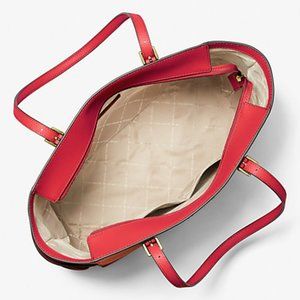 New Michael Kors Gilly Large Drawstring Travel Tote Saffiano Leather Bright Red