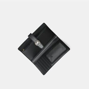 New Michael Kors Greenwich Medium Saffiano Leather Wallet Black with Gold