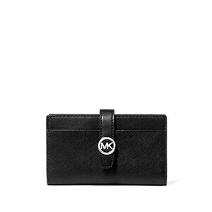 New Michael Kors Greenwich Medium Saffiano Leather Wallet Black with Silver