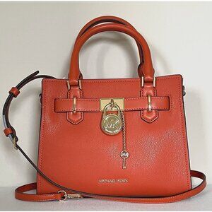 New Michael Kors Hamilton Small Leather Satchel Red Clay