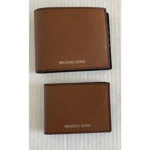New Michael Kors Harrison Men's Billfold wallet with Passcase Leather Luggage