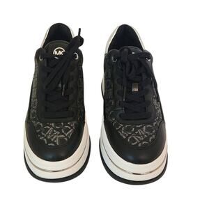 Step up your style game with these brand new Michael Kors Hayes Metallic Empire Monogram Leather Trainers! These sneakers are a size 6.5M and are guaranteed to turn heads.