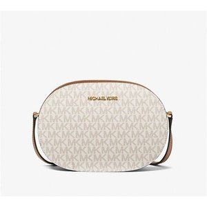 New Michael Kors Jet Set Charm Small Logo Oval Camera Crossbody Vanilla