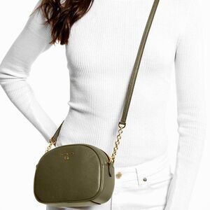 New Michael Kors Jet Set Charm Small Oval Camera Crossbody Pebble Leather Olive