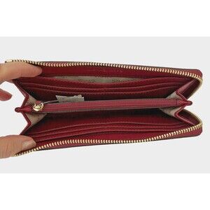 New Michael Kors Jet Set Item Large Three-Quarter Zip Wallet Leather Cherry