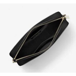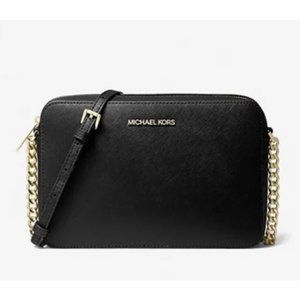 New Michael Kors Jet Set Item Large Zip Chain Crossbody Bag Black with Gold