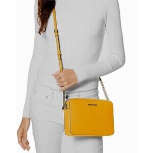 New Michael Kors Jet Set Item Large Zip Chain Crossbody Golden Rod