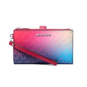 New Michael Kors Jet Set Large Ombré Logo Wristlet Wallet Dark Raspberry Multi