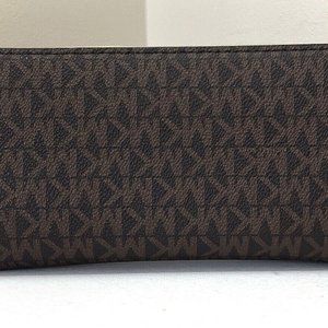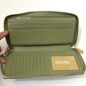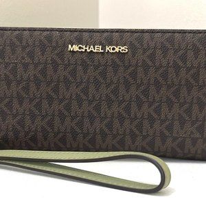 New Michael Kors Jet Set Large Travel Continental Wallet Brown / Light Sage