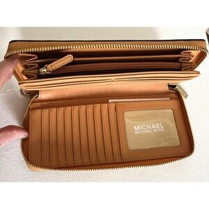 New Michael Kors Jet Set Large Travel Continental Wallet Leather Cider