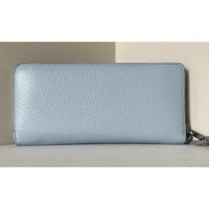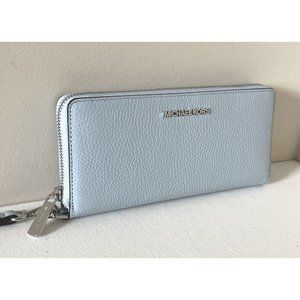 New Michael Kors Jet Set Large Travel Continental Wallet Leather Pale Ocean