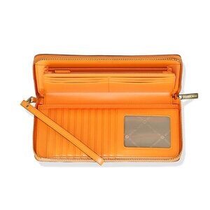 New Michael Kors Jet Set Large Travel Continental Wallet Leather Pop Orange