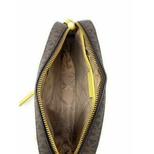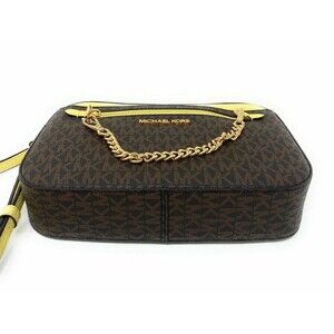 New Michael Kors Jet Set Large Zip Chain Crossbody Brown / Buttercup