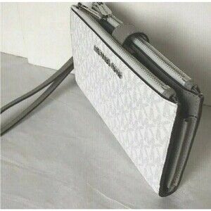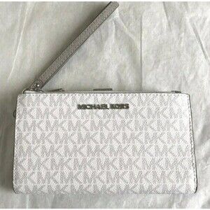 New Michael Kors Jet Set Travel Double Zip Wallet Signature Bright White